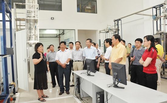 2009617下午,云南省教育考察團(tuán)在省教育廳副廳長殷翔文的陪同下來我校參觀考察。校長、黨委副書記陳志剛陪同客人參觀了我校石化工業(yè)中心。