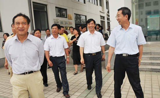 云南省教育廳廳長羅崇敏(右三)為團(tuán)長的教育考察團(tuán)在省教育廳副廳長殷翔文(右一)的陪同下來我校參觀考察