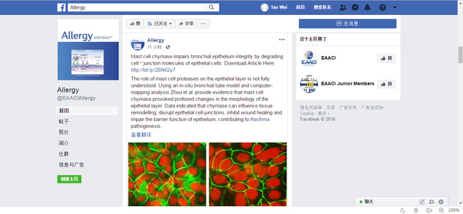 近日,我校制藥學院周曉鷹教授的免疫學團隊以常州大學為第一單位(周曉鷹為第一作者和通訊作者)在國際權威醫學刊物 ALLERGY (SCI一區,IF 6.048)上在線發表了題為“Mast cell chymase impairs bronchial epithelium integrity by degrading cell junction molecules of epithelial cells(肥大細胞糜酶通過降解上皮細胞連接分子而損傷支氣管上皮的完整性)”的病理學基礎研究論文。