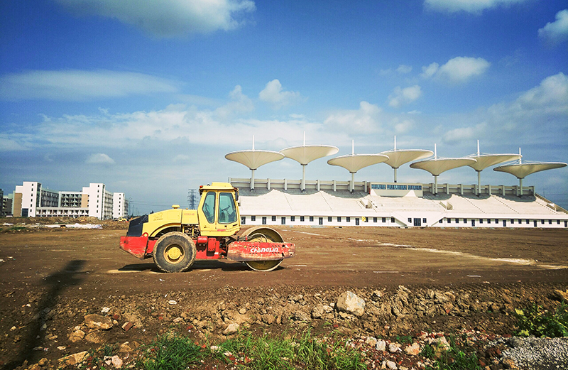 艱辛的跋涉。踉蹌的步伐,落滿積雪的肩頭……2018年初的一場大雪至今令校區管委會老師記憶深刻。校區管委會和基建處老師冒著大雪,雷打不動深入各施工項目處查驗進展情況,深一腳、淺一腳的串串腳印記錄下了建設者們堅定、有力的足印。梅雨季節的建設工地道路泥濘,行路艱難,即便穿了高幫雨鞋,身上還是會被濺得一身泥水。工地也有一定的危險,因為樓宇內外管道還沒有完全接通,因雨水倒灌進行的電力搶修都是在大風大雨中進行,然而工作人員都義無反顧地奮戰在工作崗位上。大家同甘共苦,團結一心,流汗、流血、但不流淚。