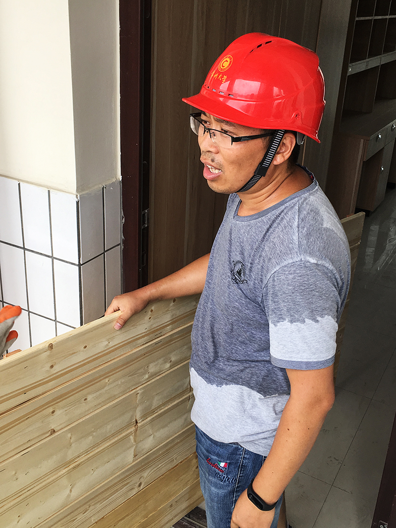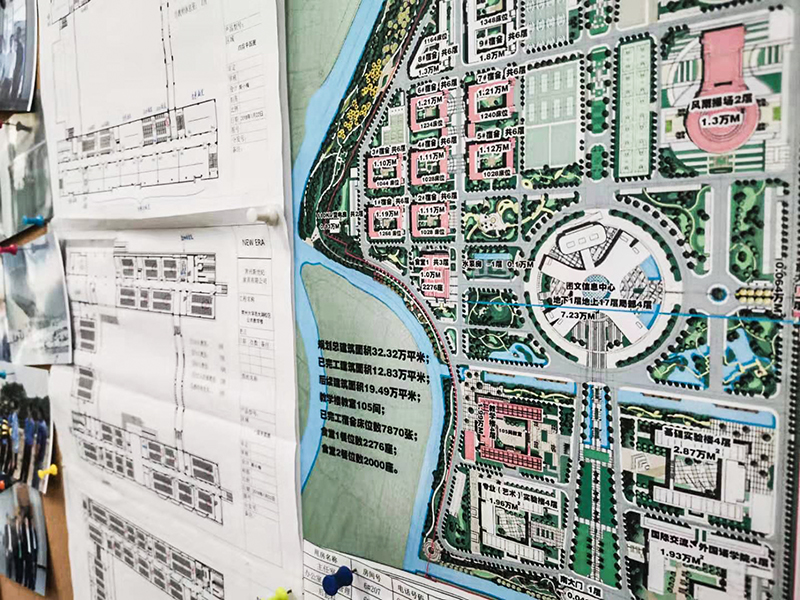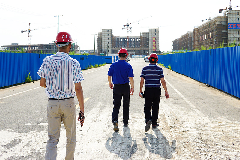 西太湖校區有兩個特別的職能部門——他們辦公室的墻上常年掛著的校區總平圖和一沓工程項目跟進表總是那么引人注目。鐵皮柜上的安全帽擺放得整整齊齊,擺放在門口的雨靴和防釘鞋上還殘留著沒有完全刷凈的塵土。兩個部門辦公室的門虛掩著——工作人員好像不在,而不遠處會議室里傳來的據理力爭的聲音卻讓我們看到了為西太湖續建工程方案熱烈討論的兩個部門的全體工作人員。這兩個部門便是西太湖校區管委會和基建處,兩個部門工作人員各為12人,平均年齡不到37周歲。2小時后,項目方案研討會結束了,他們顧不上休息,而是徑直走向在建工地,工程一線的走訪和方案優化研討幾乎成為這兩個部門每周的“必修課”。