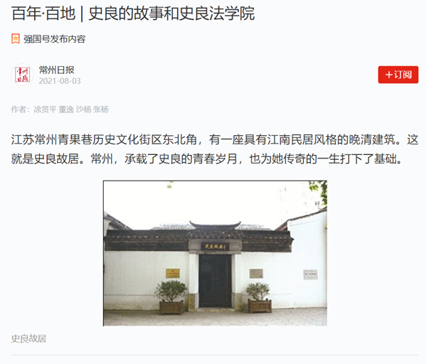 江蘇常州青果巷歷史文化街區東北角,有一座具有江南民居風格的晚清建筑。這就是史良故居。常州,承載了史良的青春歲月,也為她傳奇的一生打下了基礎。