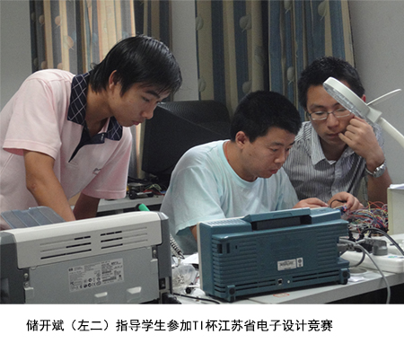 儲開斌指導學生屢獲重磅獎項。獲2013年第十一屆全國大學生電子設計競賽二等獎;2017年獲第十五屆“挑戰杯”全國大學生課外學術作品競賽全國特等獎;2018年獲第五屆“創青春”全國大學生創業大賽江蘇省銀獎;2019年獲第十六屆“挑戰杯”全國大學生課外學術作品競賽全國三等獎1項;全國機器人大賽1等獎1項;飛思卡爾智能車大賽全國二等獎3項;全國電子設計競賽全國一等獎1項、二等獎1項。