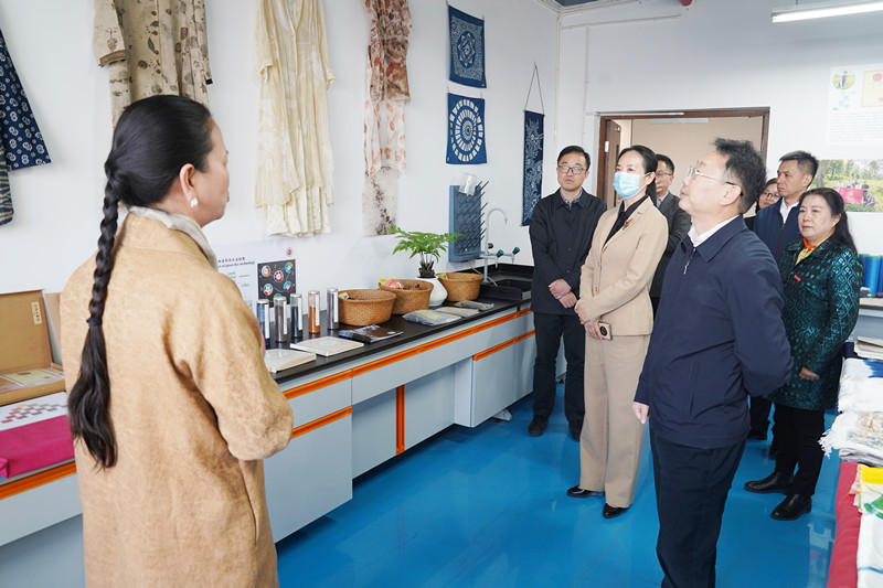 專家組一行實地察看了常州大學紅色文化主題教育館、紀俊玲教授“植物染料提取及其應用研究”工作室、黨盟共建學院——史良法學院、徐培晨美術館,參觀了“鑄牢中華民族共同體意識”教育主題書畫展,詳細了解了學校協同育人同心教育實踐基地的文化傳統、優勢特色和教育意義。