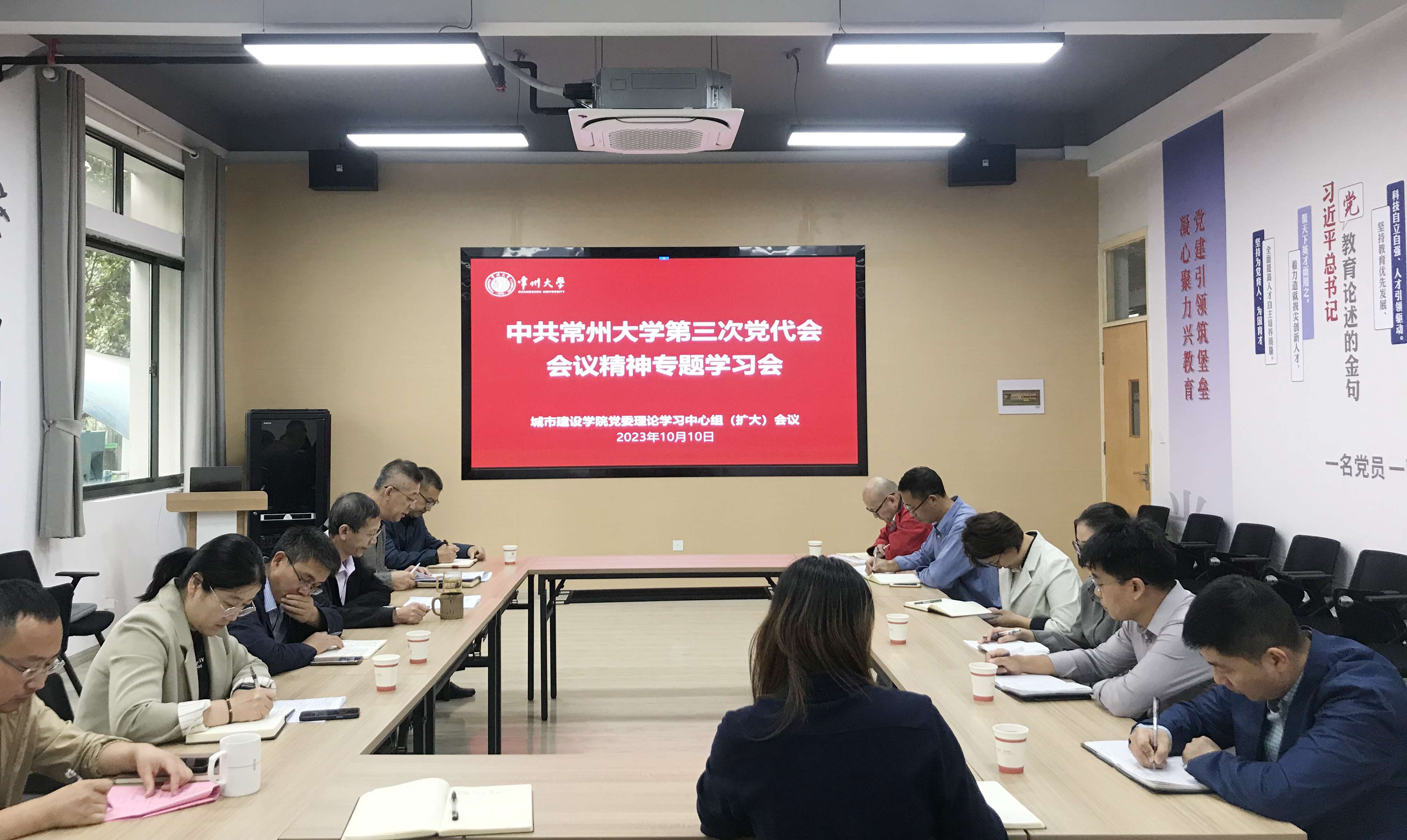 10月10日上午,城市建設學院黨委在科教城校區明行樓119室召開中國共產黨常州大學第三次黨代會精神專題學習會。黨委書記喬元明傳達了校第三次黨代會精神,帶領與會人員學習黨委書記徐守坤所作的《牢記囑托走在前 感恩奮進做示范 奮力譜寫特色鮮明的高水平地方領軍型大學新篇章》報告。他要求全體黨員深刻學習領會報告精神,堅持高質量黨建引領高質量發展,一體化推進“教育、科技、人才”發展戰略,落實立德樹人根本任務,踐行教育強國、科技報國使命,團結帶領全院師生員工深化改革、爭創一流,奮力譜寫特色鮮明的高水平地方領軍型大學新篇章。