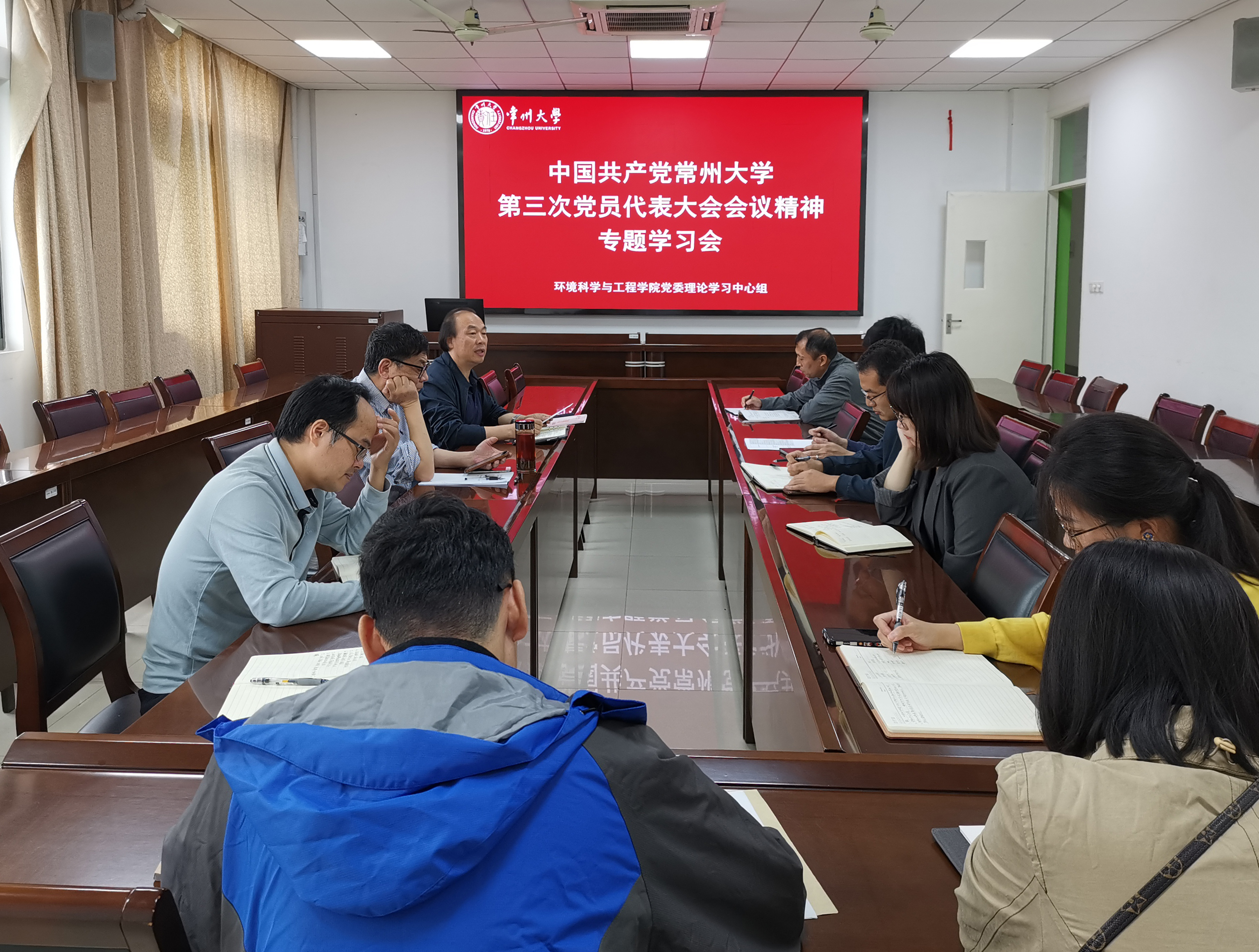 10月7日上午,環境科學與工程學院黨委在科教城校區明行樓341室召開中國共產黨常州大學第三次黨員代表大會精神專題學習會。黨委書記薛榮傳達了校第三次黨代會精神,帶領與會人員學習黨委書記徐守坤所作的《牢記囑托走在前 感恩奮進做示范 奮力譜寫特色鮮明的高水平地方領軍型大學新篇章》報告。他要求全體黨員深刻學習領會報告精神,認真踐行堅持黨的全面領導不動搖,堅持立德樹人使命不動搖,堅持服務國家戰略不動搖,堅持特色發展方向不動搖,堅持師生至上宗旨不動搖,團結帶領全院師生員工緊緊圍繞“特色鮮明的高水平地方領軍型大學”奮斗目標,努力拼搏、不斷進取,在服務江蘇“走在前、做示范”的偉大征程中展現常大責任和擔當。