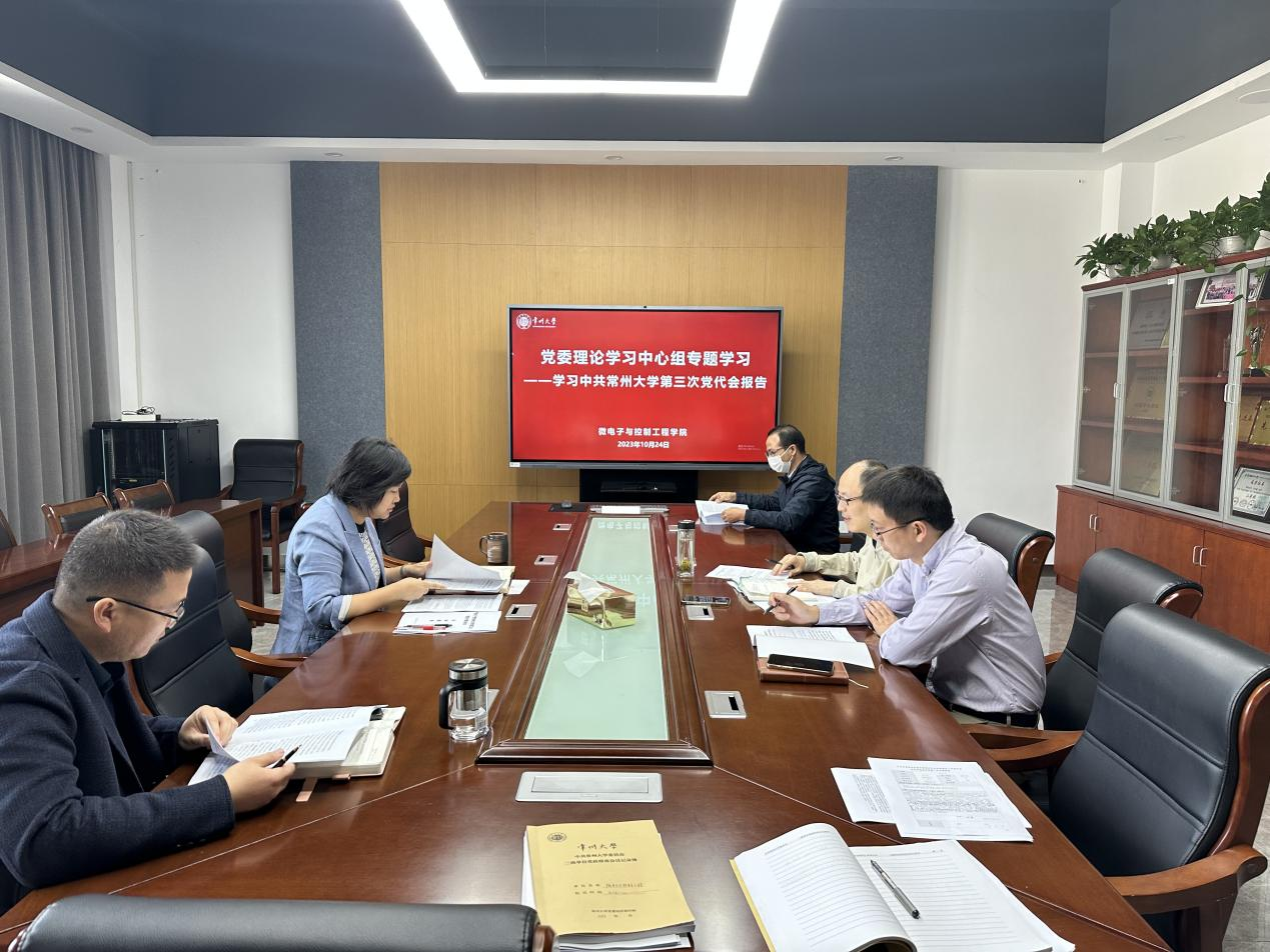 10月24日上午,微電子與控制工程學院在立功樓404召開黨委理論學習中心組專題學習會議,集中學習貫徹中國共產黨常州大學第三次黨員代表大會精神。黨委書記吳青玲領學了校黨委書記徐守坤所作的《牢記囑托走在前感恩奮進做示范奮力譜寫特色鮮明的高水平地方領軍型大學新篇章》報告,重點解讀了報告提出的“三大制約”、“四大策略”和“九大行動”。她強調,學院班子要強化擔當作為,講政治、有闖勁、重實干,團結帶領學院凝練發展特色,為實現全面建成特色鮮明的高水平地方領軍型大學的目標而奮斗。
