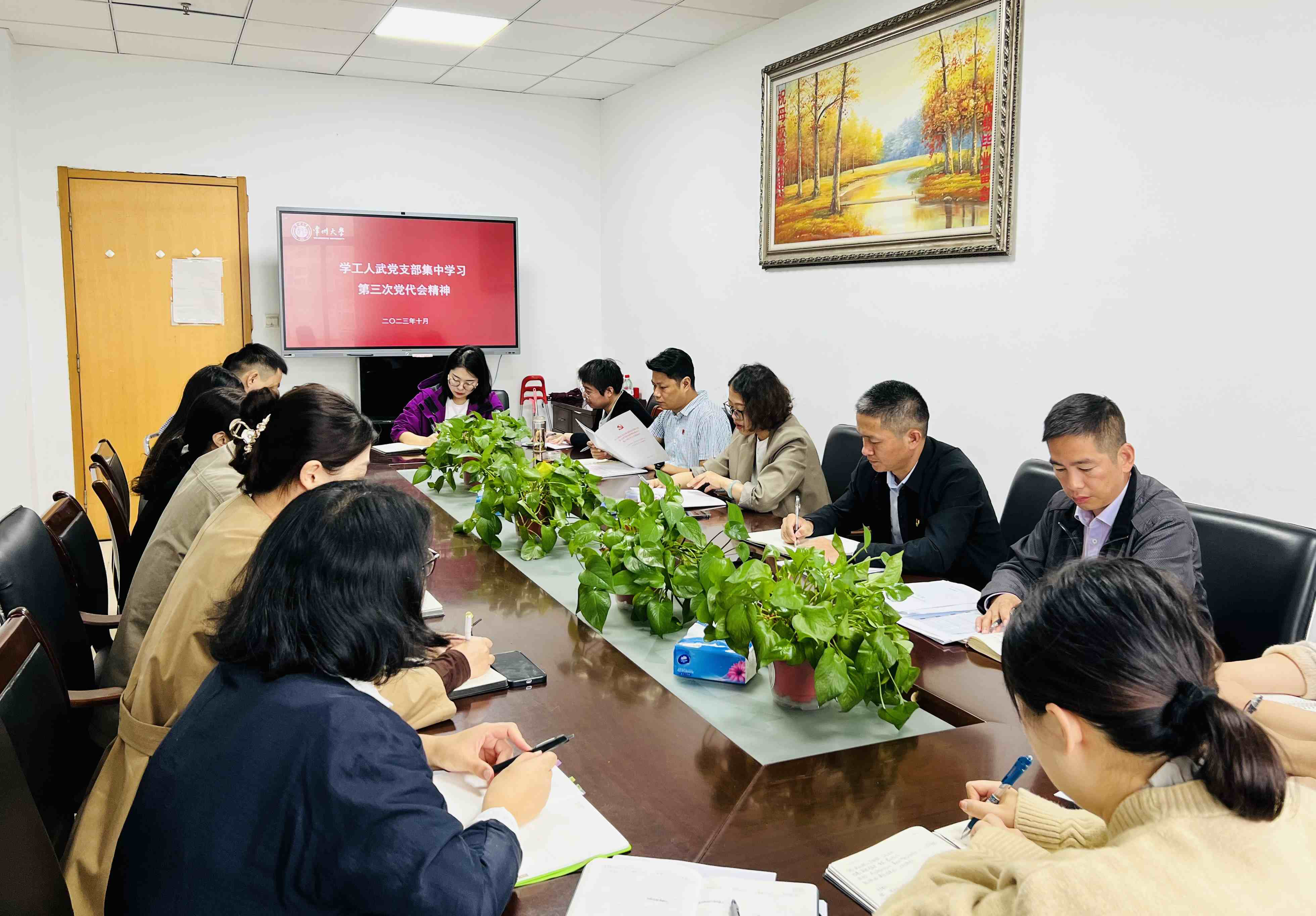 10月30日,宣傳部黨支部召開黨員大會,學習貫徹學校第三次黨代會精神。黨委常委、宣傳部部長薛冰分別從過去五年發展的成果、未來的光榮使命、高質量發展的時代答卷、新時代黨的建設新的偉大工程等方面傳達了學校第三次黨代會報告的主要內容,重點解讀了“一個引領、四大策略、九大行動”路線圖,同時分析了學校事業發展面臨的“三大制約”。薛冰強調,要堅持學深悟透,準確領會黨代會精神實質,立足自身工作實際,把學習好、宣傳好、貫徹好、落實好黨代會精神,作為當前和今后一段時期重要政治任務、工作總綱以及行動指南。大家紛紛表示,要把學習、宣傳和貫徹第三次黨代會精神作為當前的重要任務,把思想和行動統一到大會的決策部署上來,更加奮發有為推動學校高質量發展。