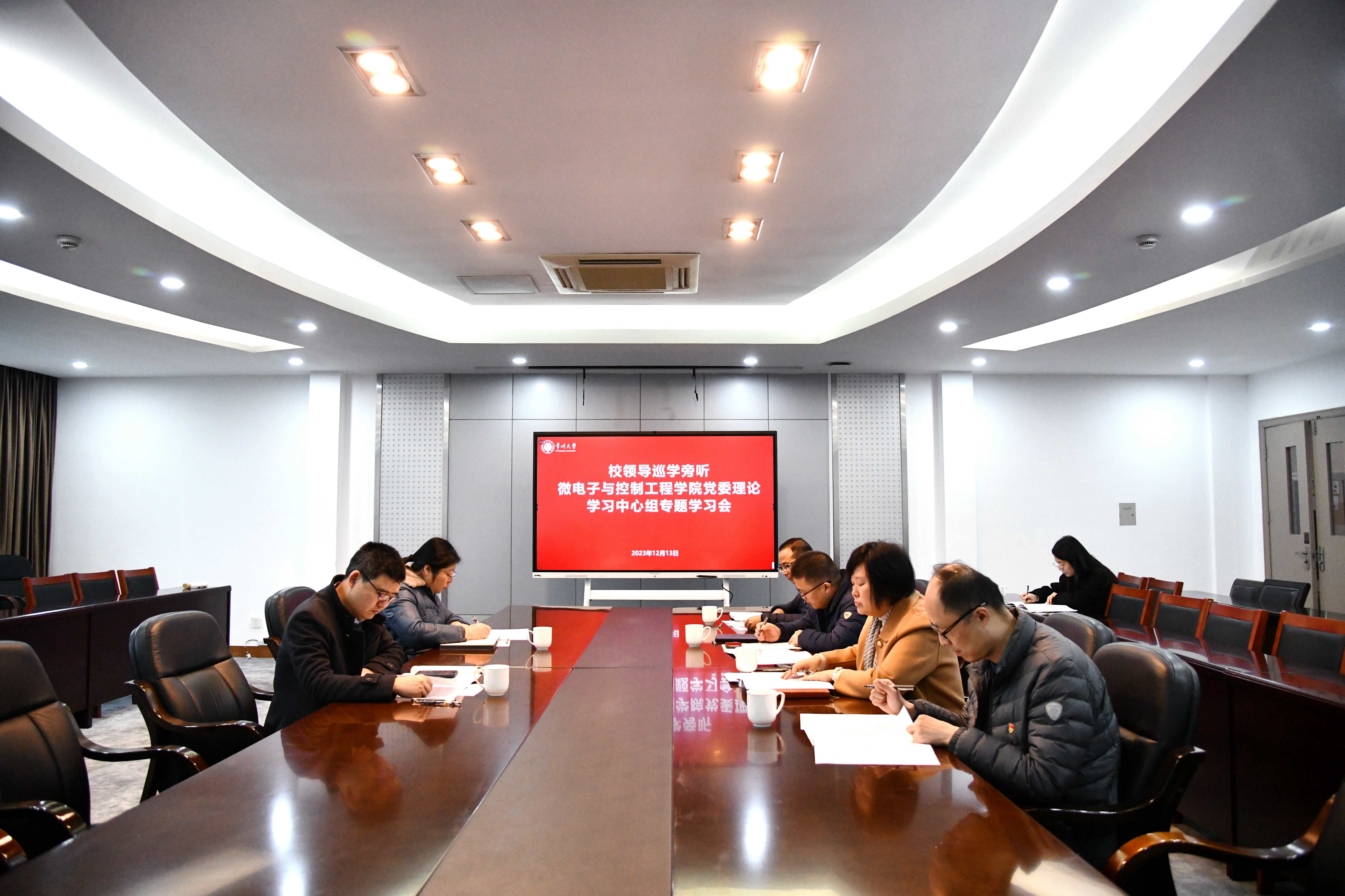 12月13日上午,副校長王建浦在科教城校區文正樓第五會議室巡學旁聽微電子與控制工程學院黨委理論學習中心組專題學習會。學院黨委理論學習中心組全體成員參加學習,學院黨委書記吳青玲主持會議。
