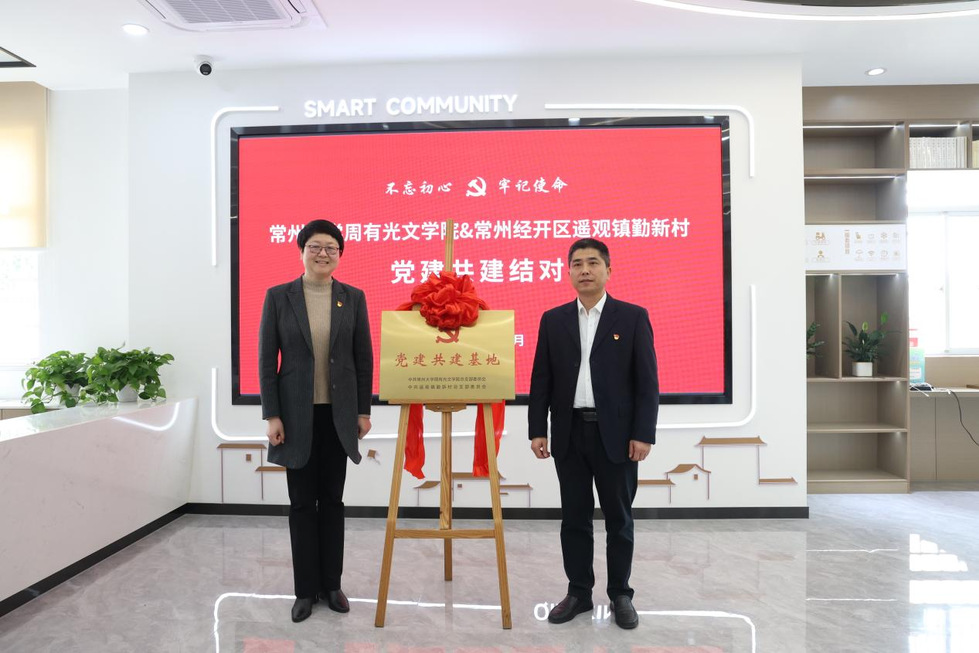 為深入貫徹落實黨的二十大精神,共同推動新時代文明實踐,近日,常州大學周有光文學院與常州市經開區遙觀鎮勤新村舉行黨建共建活動。周有光文學院相關負責人、內設機構負責人、教師代表,勤新村黨總支書記周建明及總支班子成員參加活動。