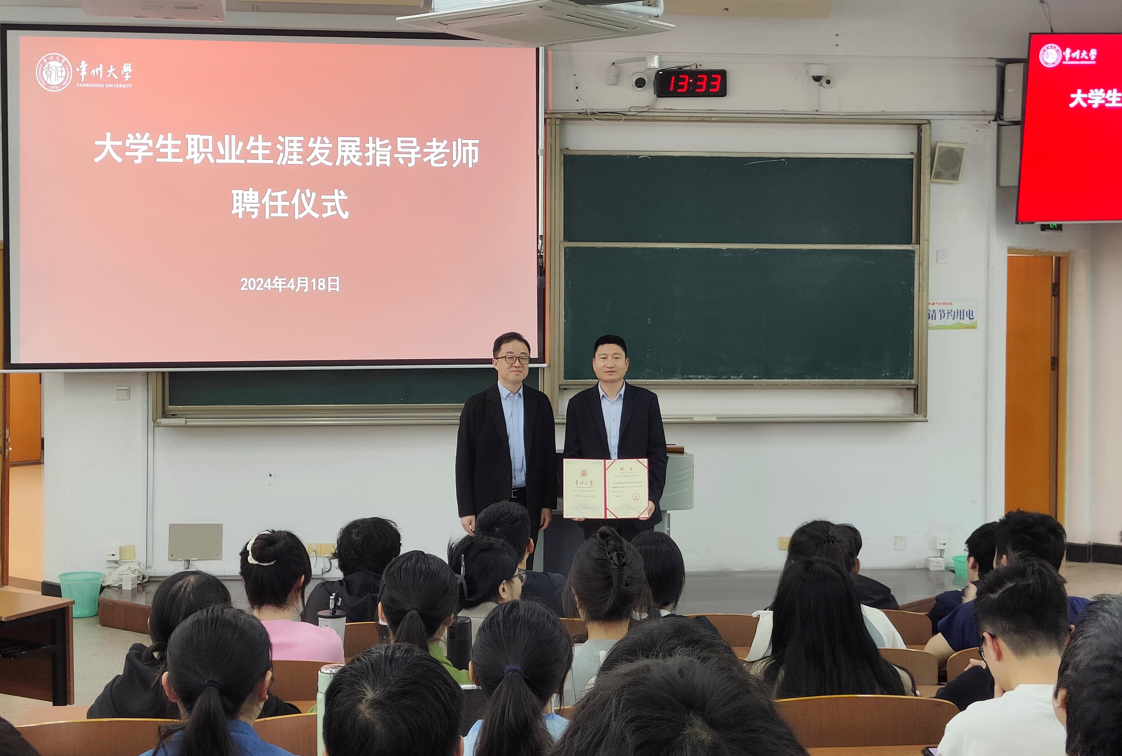 交流會后,周剛為曹其林頒發“大學生職業生涯發展指導老師”聘書,曹其林為機械學院學生開展“求職準備及擇業定位”生涯指導講座。(通訊員/陰祥 審核/蔣琳 編輯/莊媛)