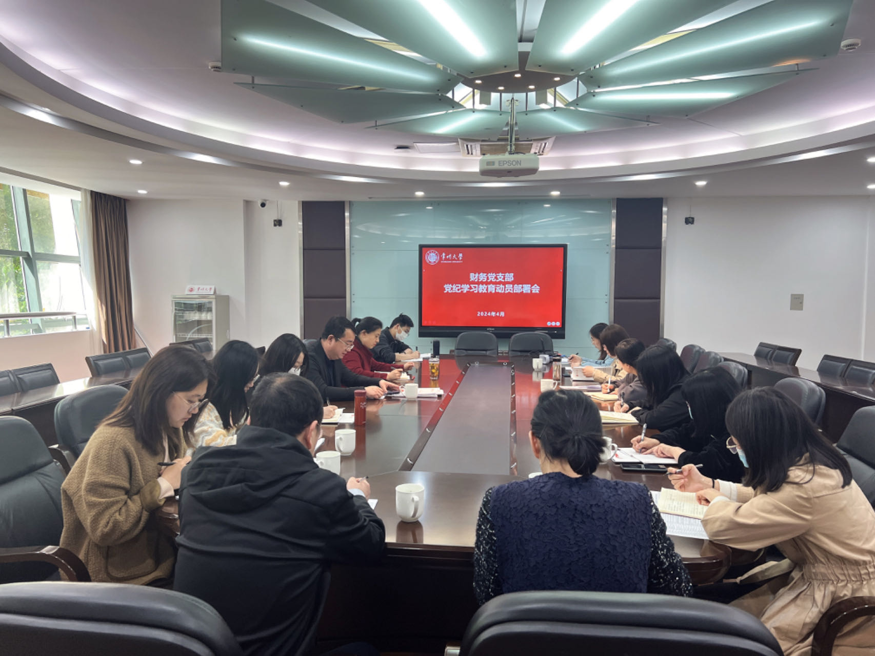 近日,財務黨支部在科教城校區文正樓第一會議室召開黨紀學習教育動員部署會。財務黨支部書記周曉東主持會議并作動員講話,財務黨支部黨員參加會議。