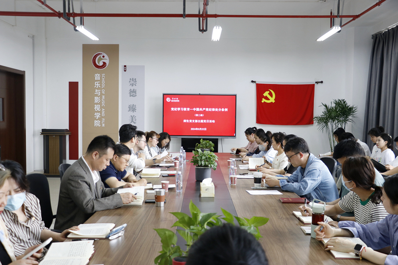 5月22日下午,音樂與影視學(xué)院師生黨支部開展黨紀(jì)學(xué)習(xí)教育暨《中國共產(chǎn)黨紀(jì)律處分條例》(以下簡稱《條例》)理論學(xué)習(xí),黨委常委、副校長楊琳及支部全體黨員參加學(xué)習(xí),黨支部書記于曄主持會(huì)議。