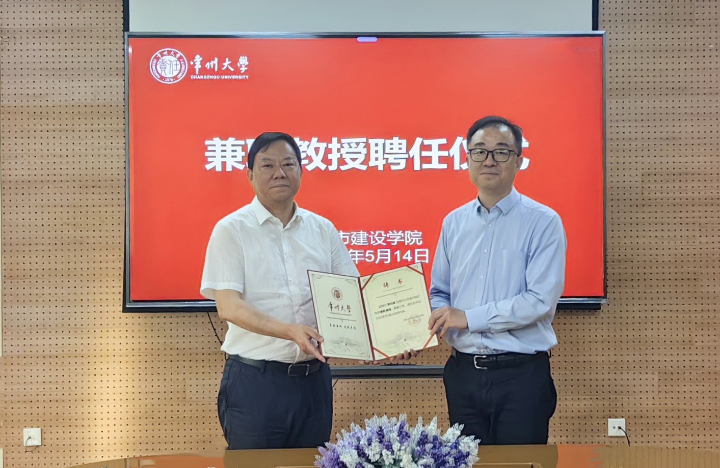 周剛為殷云峰頒發常州大學城市建設學院兼職教授聘書。(通訊員/程成 審核/劉茂燦 編輯/莊媛)