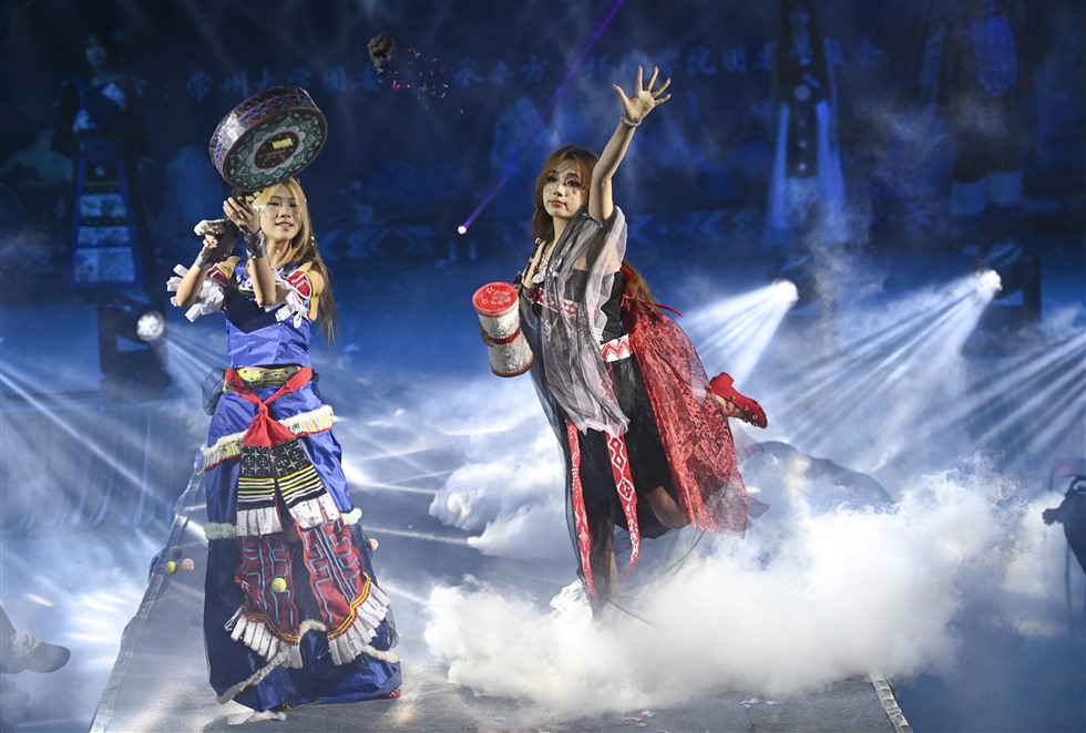 決賽現場,模特們身著環保材質制作的特色民族服飾依次登臺,融入民族舞蹈、樂曲等元素,生動呈現了各民族的生活場景和文化習俗,展現了民族風采和大國底蘊。